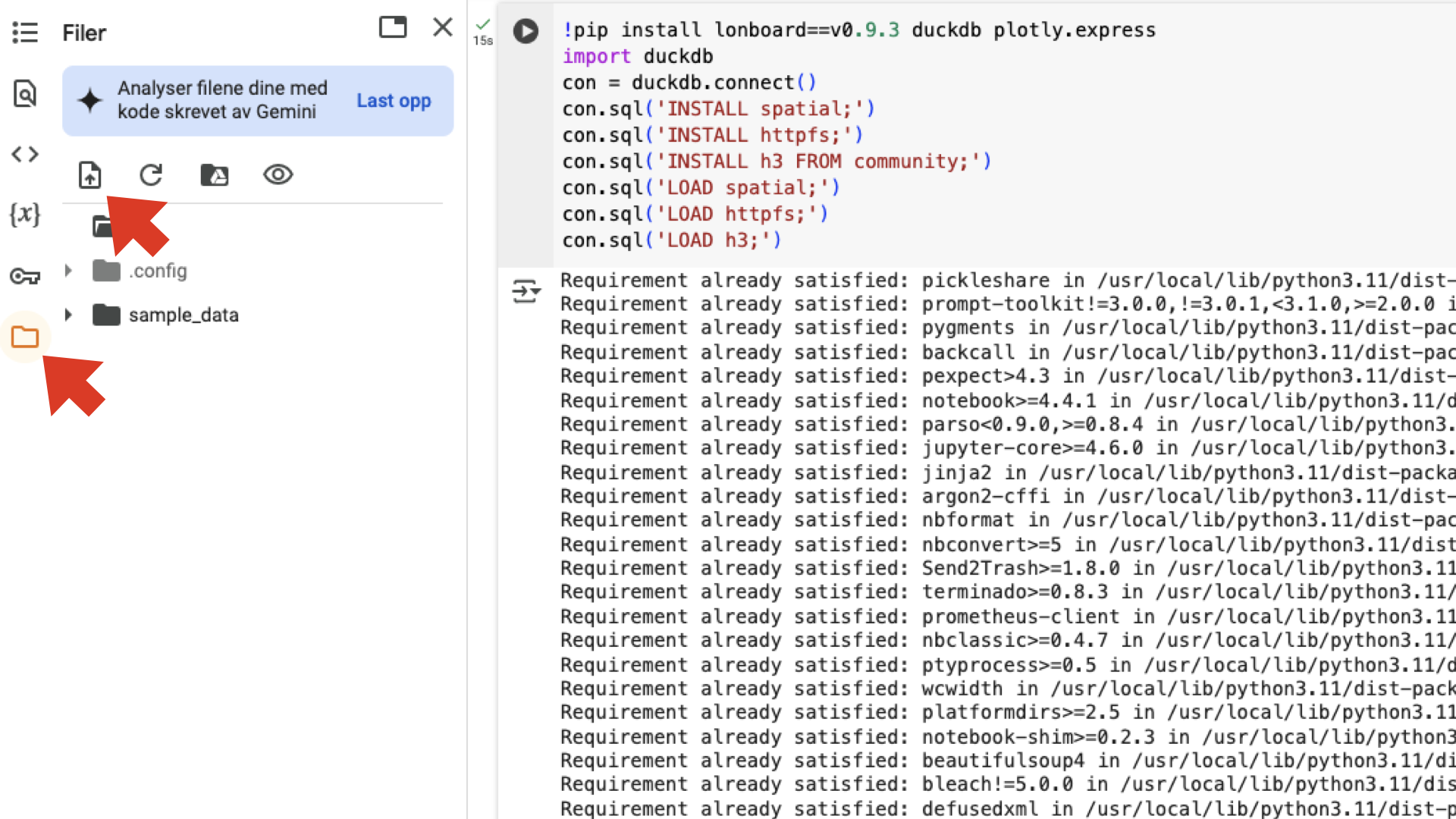 Opprett notebook og installer DuckDB med utvidelser