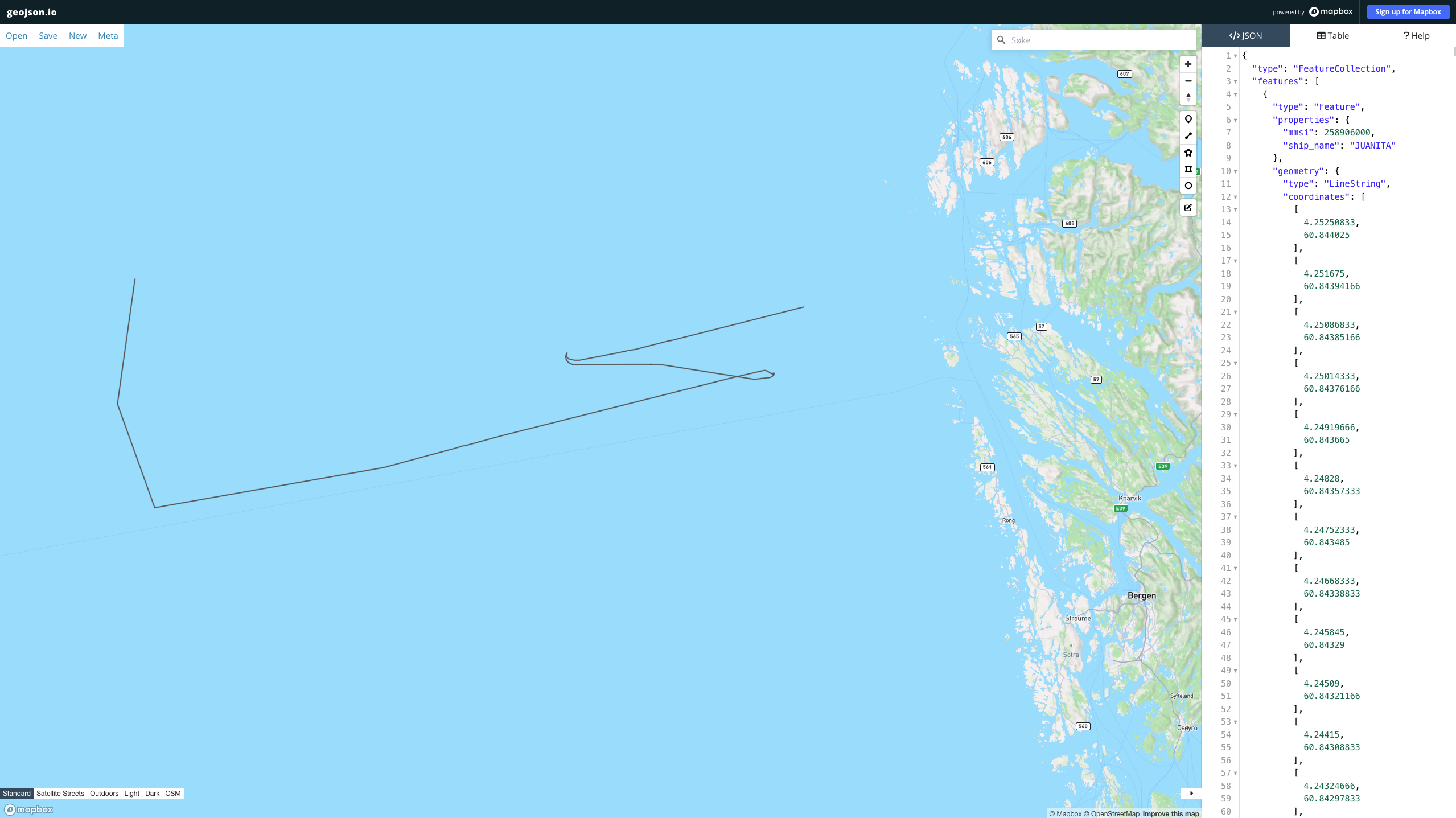 Eksport av ruter som GeoJSON for visualisering