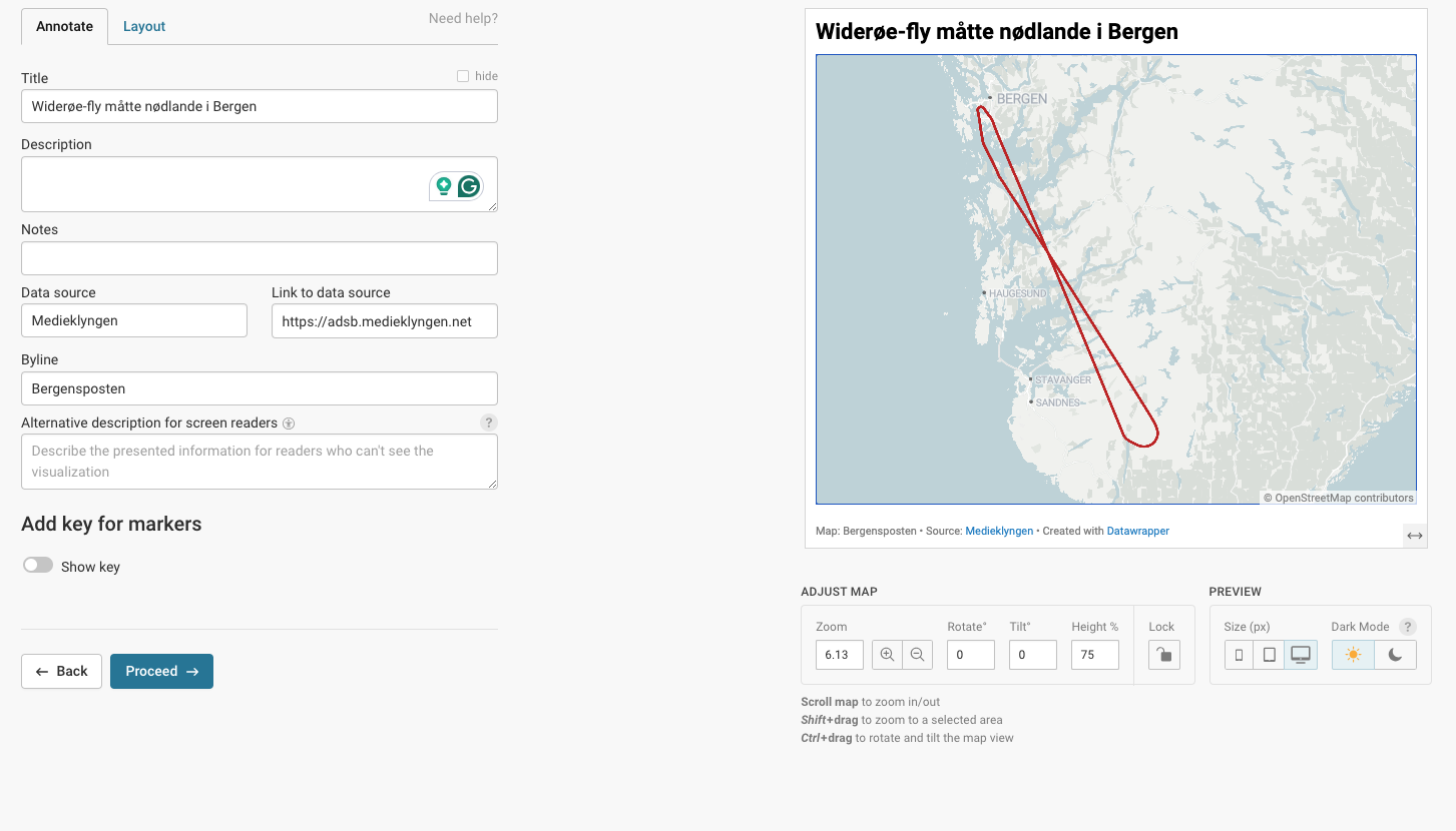 Nå er du nesten i mål! På neste skjermbilde klikker du på Publish now. Deretter får du en embed-kode som du kan bruke til å legge kartet inn i en artikkel.
