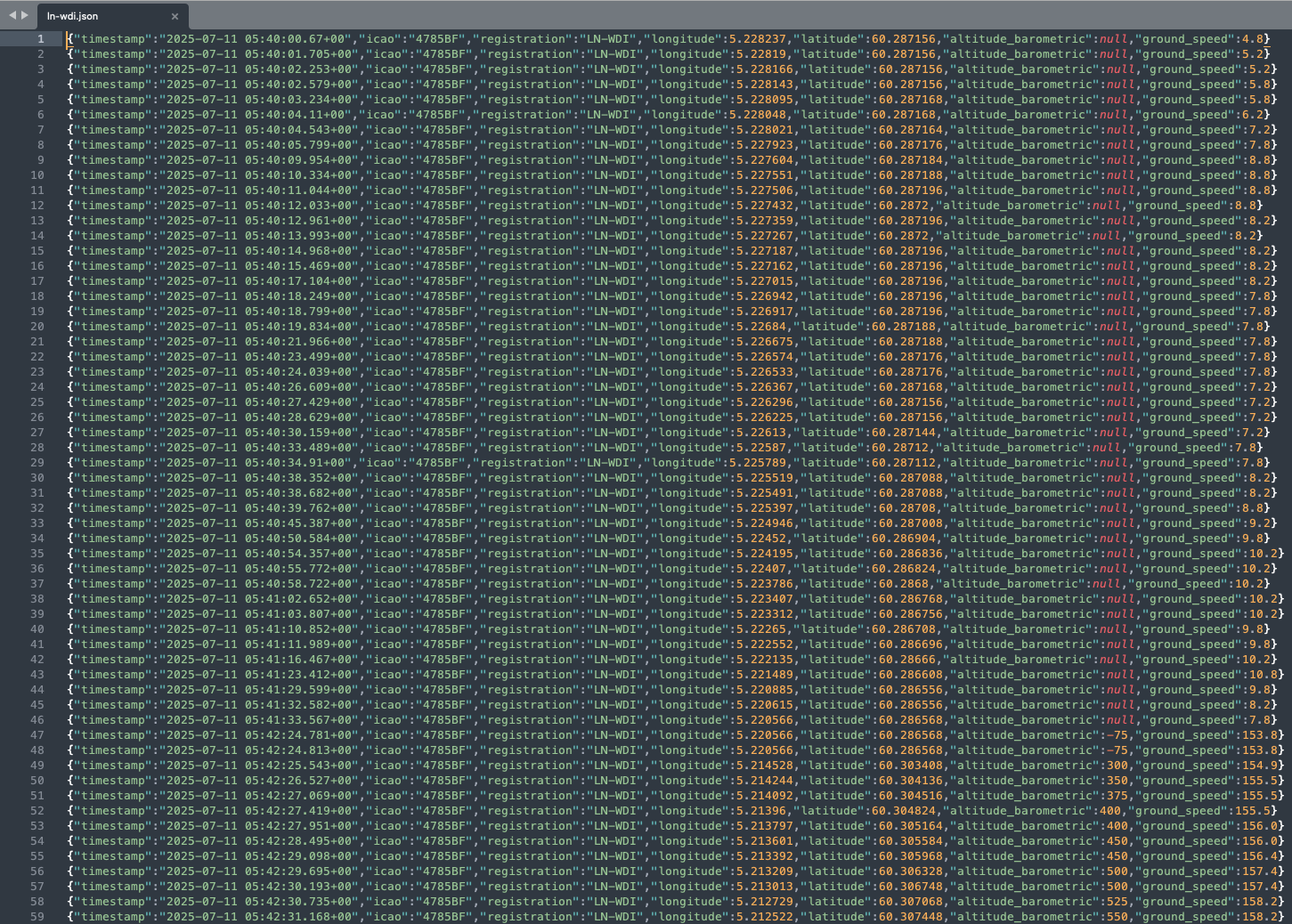 │ 2025-11-01 20:06:1… │ 45AC52 │ OY-KBR │ 0412 │ … │ false │ false │ 0 │