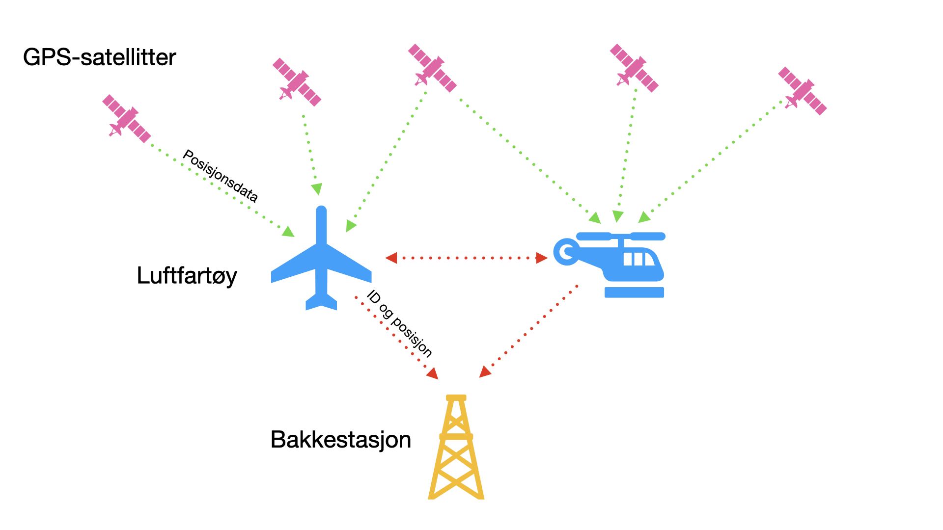 Figur 1: Skjematisk fremstilling av ADS-B-systemet.