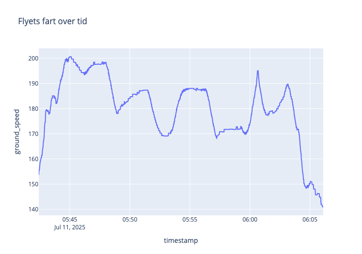 Ved å velge en H3-sektor med opplÞsning 2 midt i SÞr-Norge, kan vi hente ut all flytrafikk i dette området for datoen vår, 11. juli 2025.