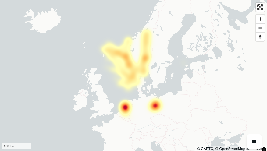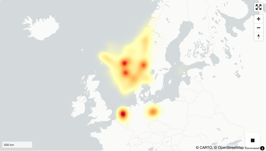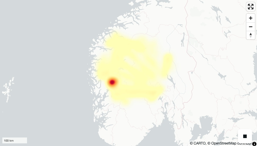 Figur 12: Heatmap av politihelikoptre 11. juli 2025, generert med Lonboard.