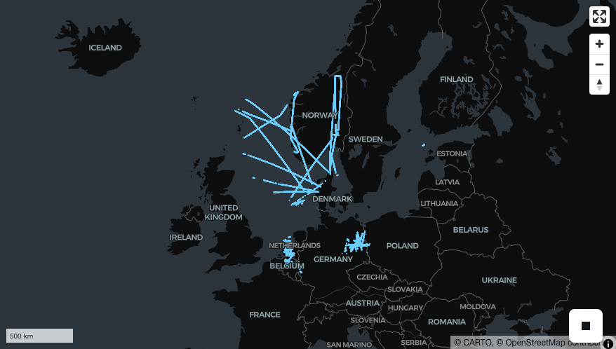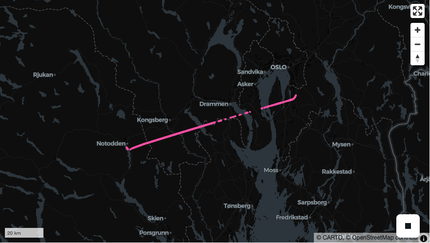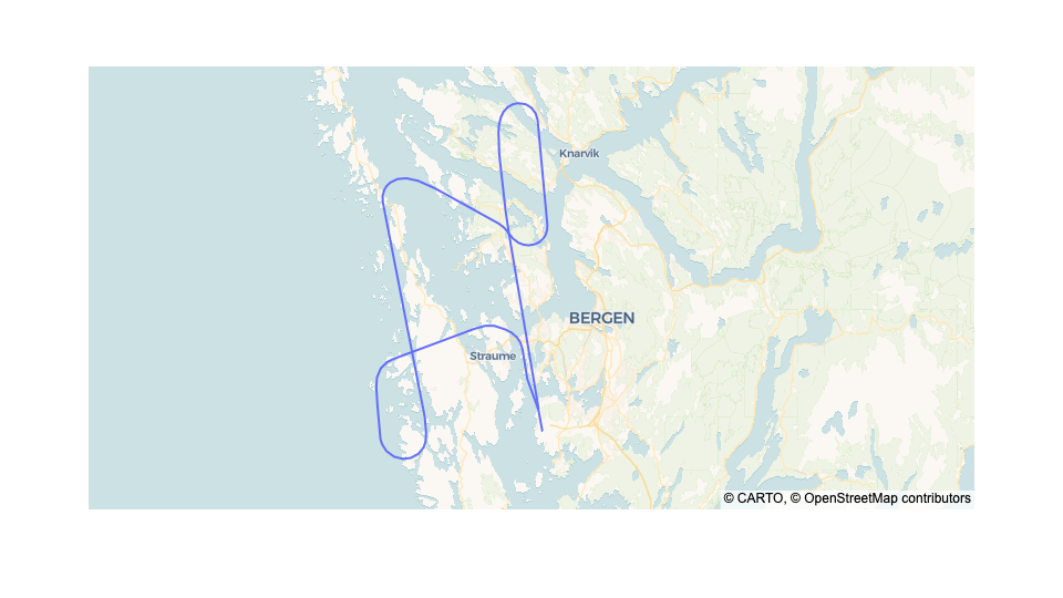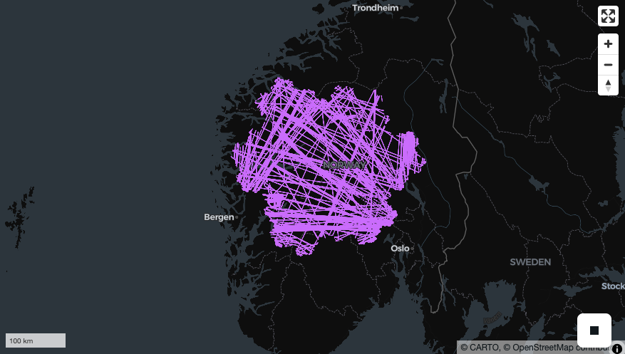Figur 13: Bevegelser for politihelikopteret LN-ORA, visualisert med Lonboard.