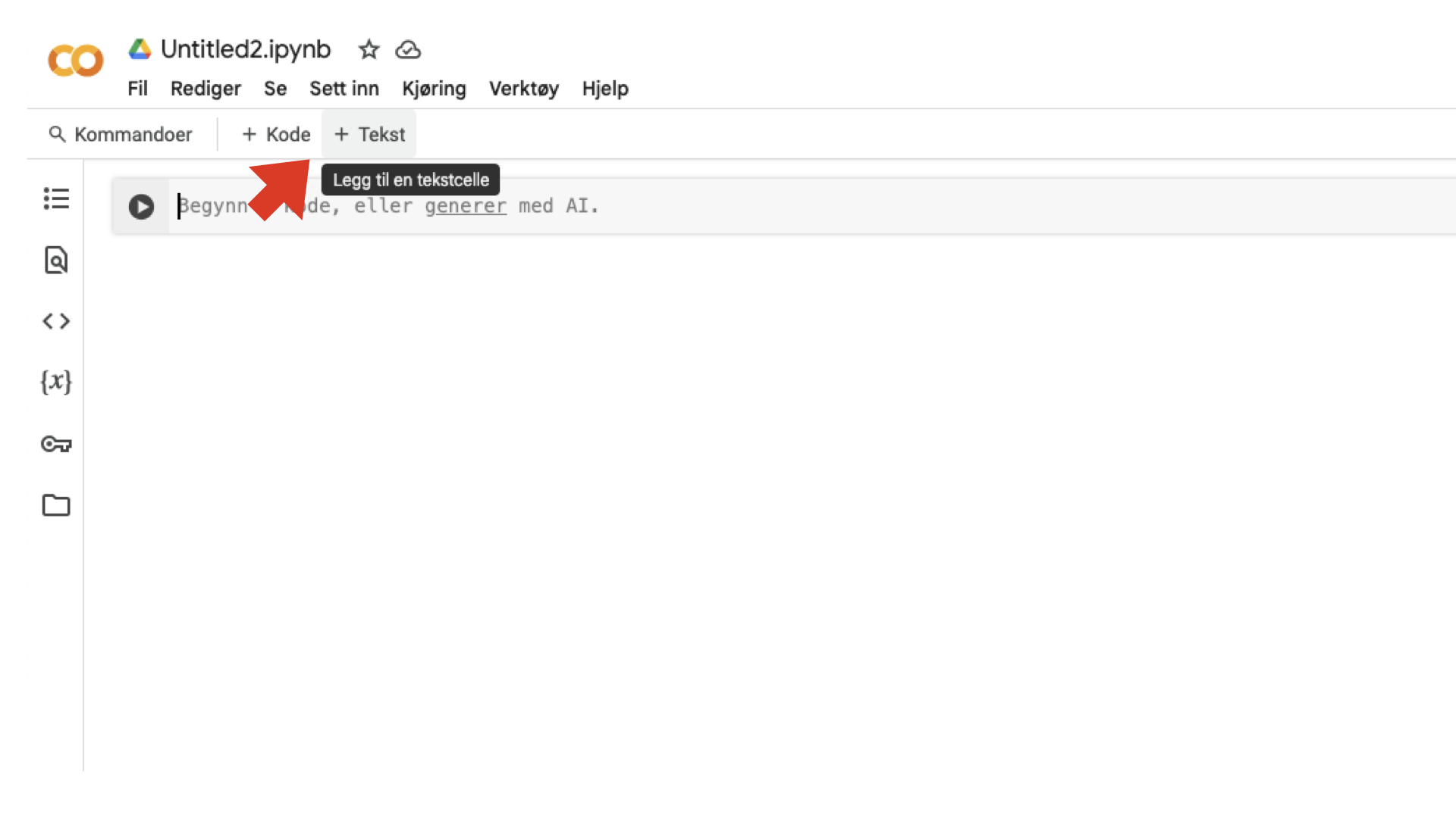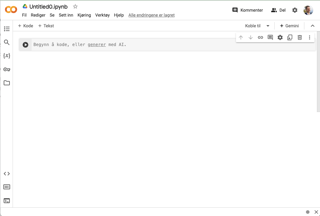 En notebook er et interaktivt verktÞy der du skriver og kjÞrer kode direkte i nettleseren. Tenk pÃ¥ det som en blanding av en tekstbehandler og en kodeeditor, hvor du kan kombinere forklarende tekst, bilder og kode i én og samme arbeidsflate. Det er et populÊrt verktÞy innen datavitenskap, maskinlÊring, undervisning â og ikke minst datajournalistikk.